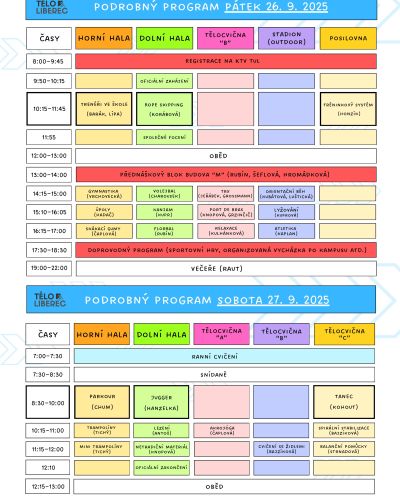 Veškeré semináře a přednášky se budou konat v prostorách a na sportovištích Katedry tělesné výchovy a sportu FP TUL.