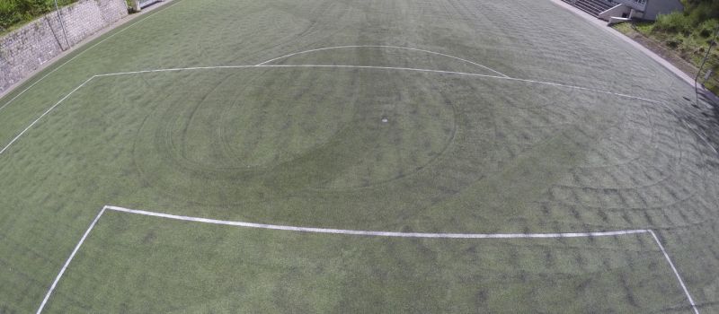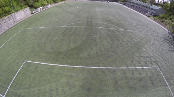 Fotbalové hřiště s umělým trávníkem 4. generace (rozměry 98 x 56 m), osvětlení dle normy ČSN, certifikace FAČR. Na hřišti probíhá výuka fotbalu, softbalu a frisbee. K dispozici stálé fotbalové branky o rozměrech 7,32 x 2,44 m, přenosné branky 5 x 2 m (2 páry) a 3 x 2 m (3 páry).